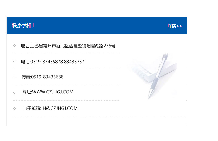 地址:常州市新北區友邦商務大廈1幢16、17層  電話:0519-85101652  傳真:0519-85112595  郵編:213022  網址:www_cz-jiayue_cn.fjzcxf.com  郵箱:xiajifengaa@163.com